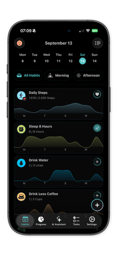 Receive intelligent suggestions for habits and tasks based on your goals and past progress to stay motivated and make meaningful changes with less guesswork.
